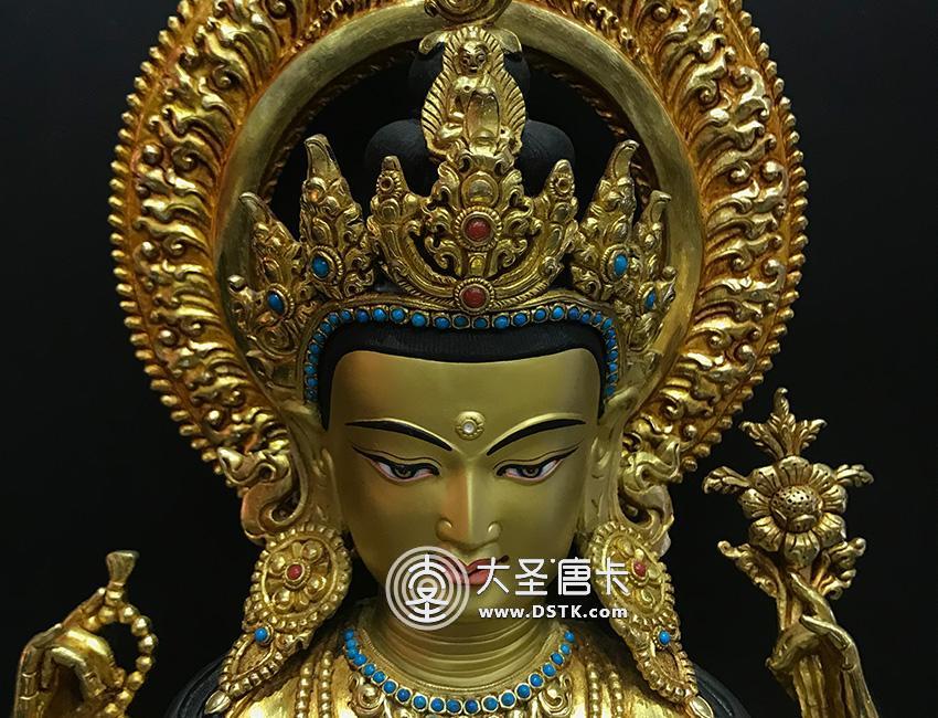 产地:尼泊尔佛像 工艺:鎏金 创作年份:2017 题材:菩萨 绘制时间:0日 尺寸:43*15*18cm 重量:0 g 材质:紫铜 使用场地: